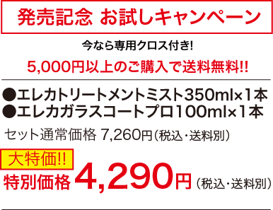 | 350mlx1本 | 100mlx1本(専用スポンジ付) | エレカトリートメントミスト350mlx1本 エレカガラスコートプロ100mlx1本 |